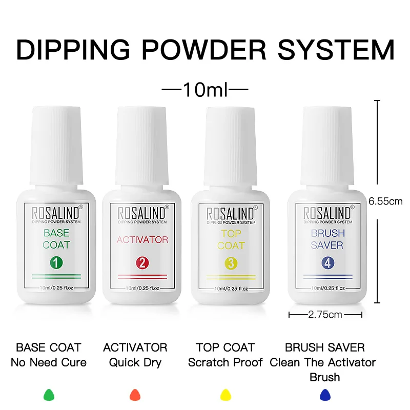 ROSALIND чистый цвет Flash окунающий порошок Пыль для ногтей Декоративная смола пигмент для дизайна ногтей требуется грунтовка и уплотнительный слой