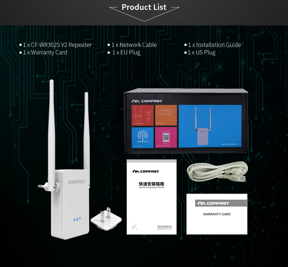 Отзывы о Comfast CF-WR302S Беспроводной Wi-Fi ретранслятор 300 Мбит/с усилитель сетевой расширитель