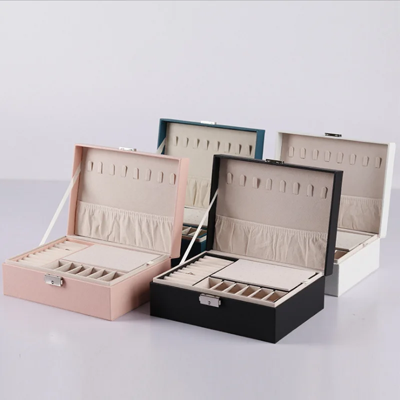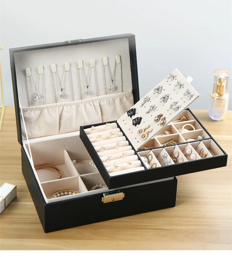 Функция: двухслойная коробка для хранения, может хранить серьги, ожерелья, браслеты, часы.