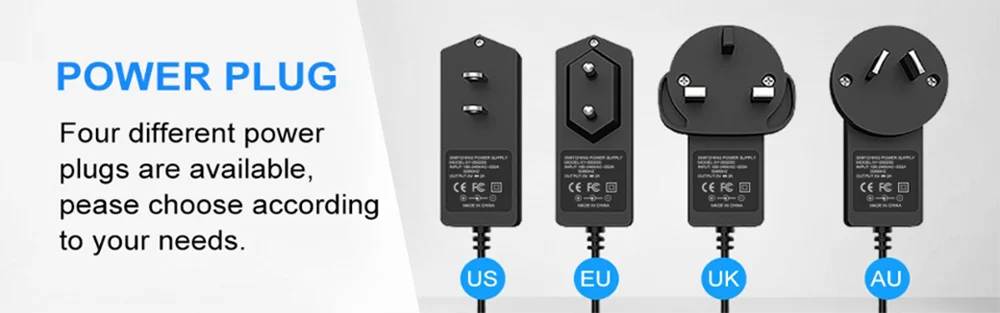 Есть четыре различных спецификации источника питания для вас на выбор: американский, британский, Европейский и австралийский. Вы можете выбрать в соответствии с вашими потребностями.