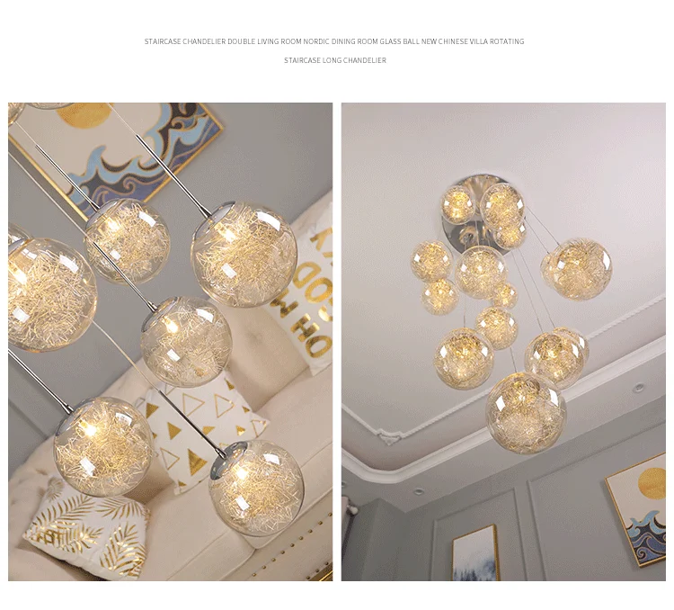 Дуплекс лестничный светильник Светодиодный Люстра для гостиной столовой стеклянный шар вилла вращающаяся полая лестница длинная G4 Подвесная лампа