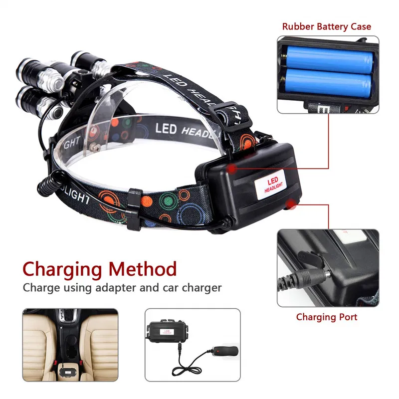 Отзывы о Мощный светодиодный налобный фонарь регулируемый головной с 3/5 Светодиодами T6
