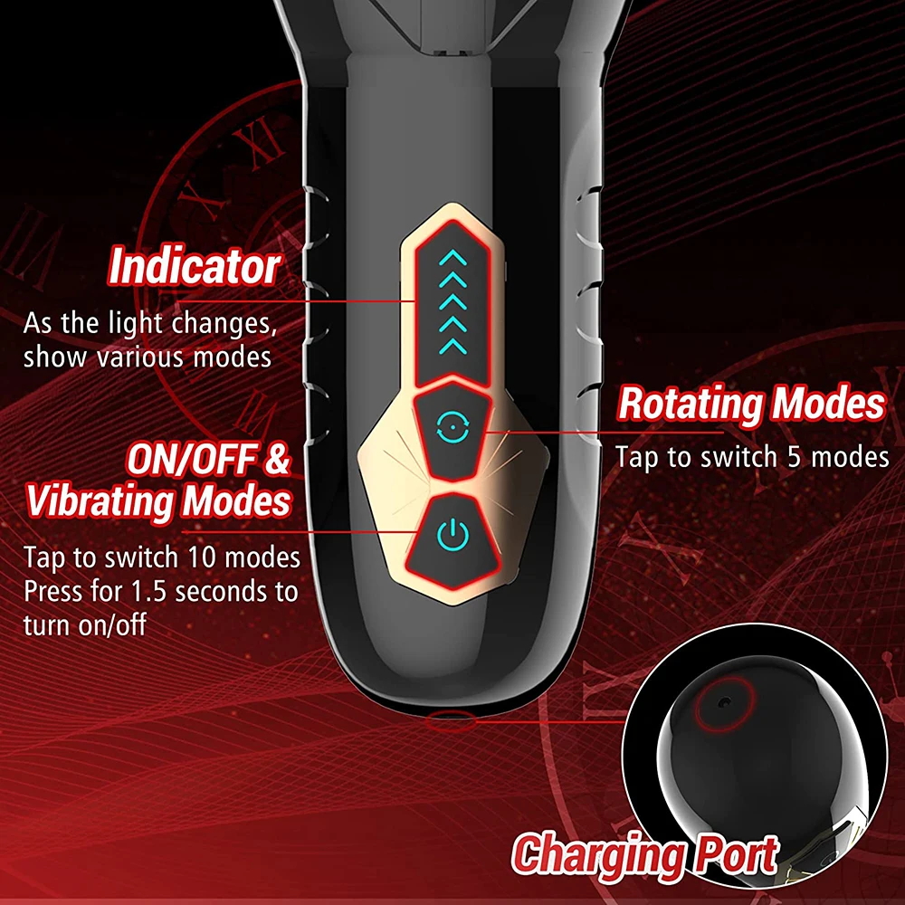 1. Мощность: Нажмите и удерживайте в течение 3-5 секунд, чтобы включить, светодиодный светильник включен, нажмите его один и один, чтобы переключить Режимы вибрации. Нажмите и удерживайте снова, чтобы выключить.
