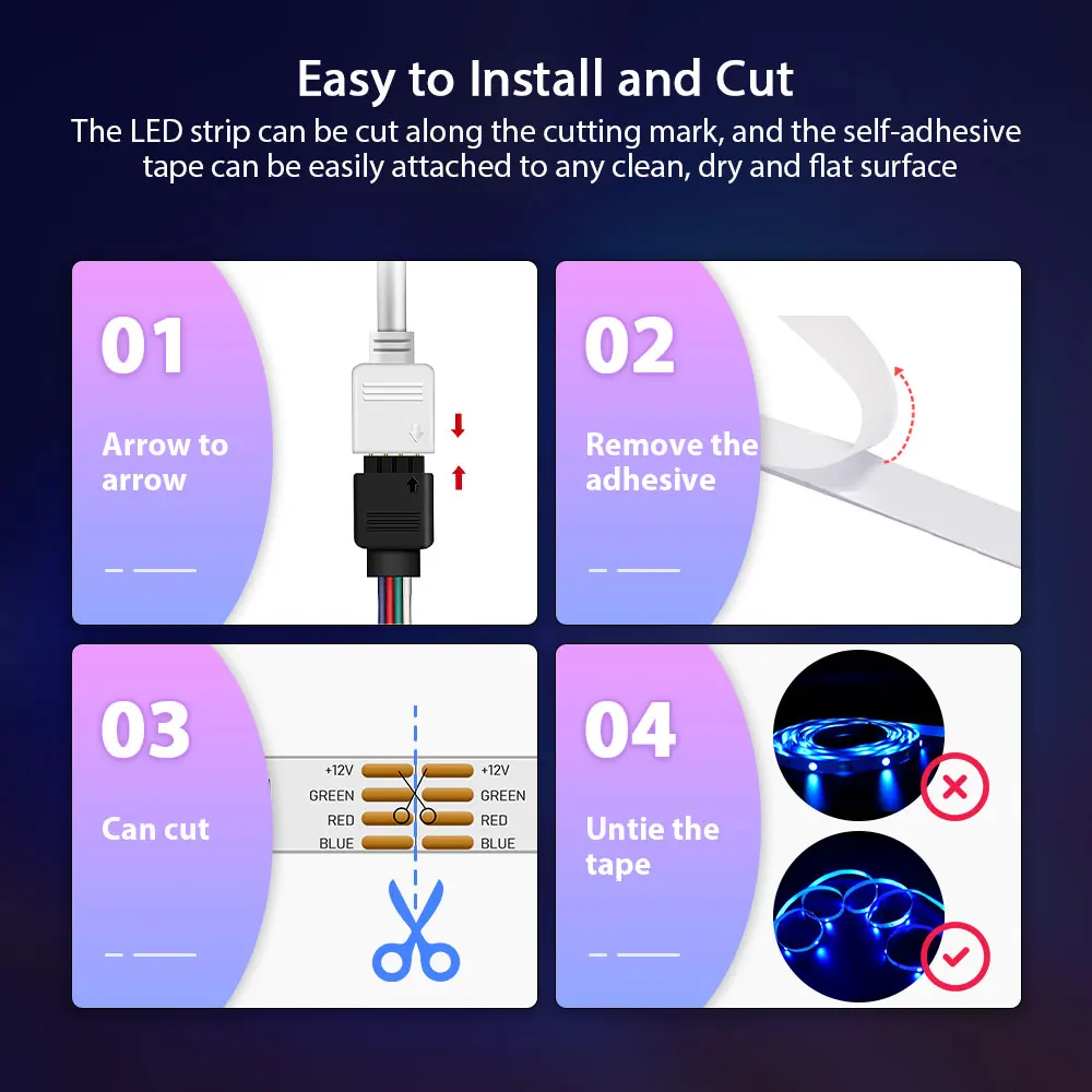 5. Не прикрепляйте два светодиодный полоски вместе.