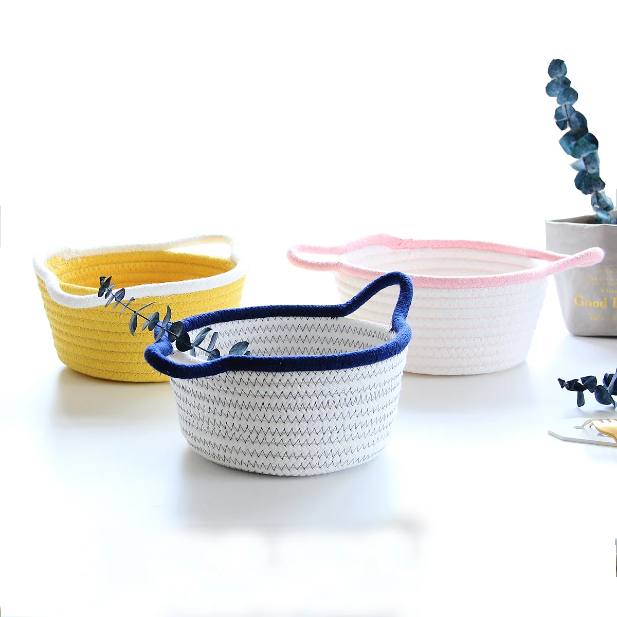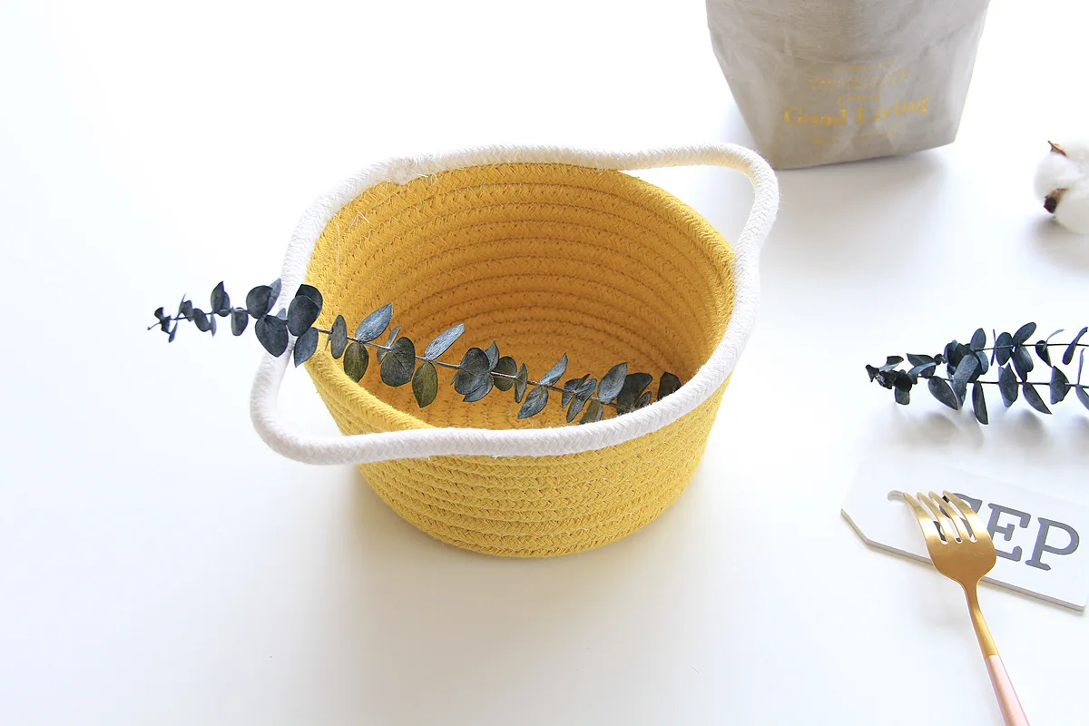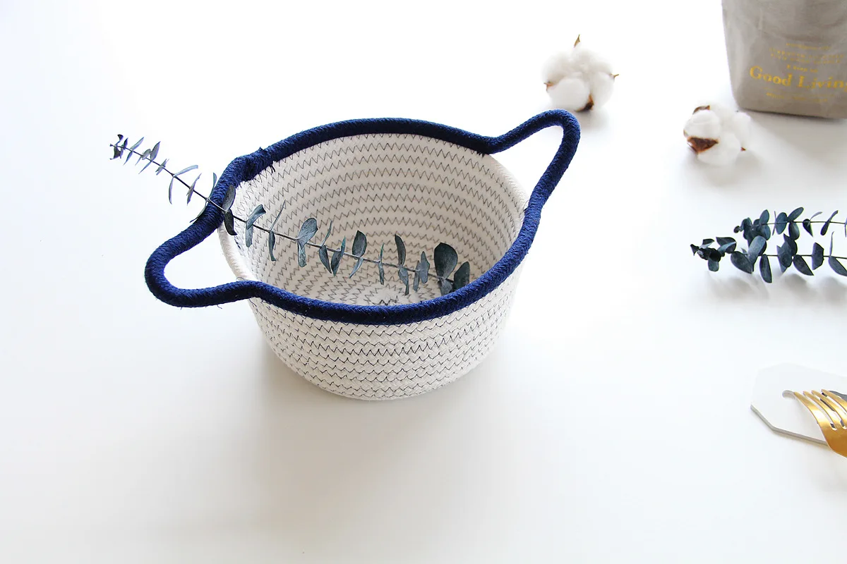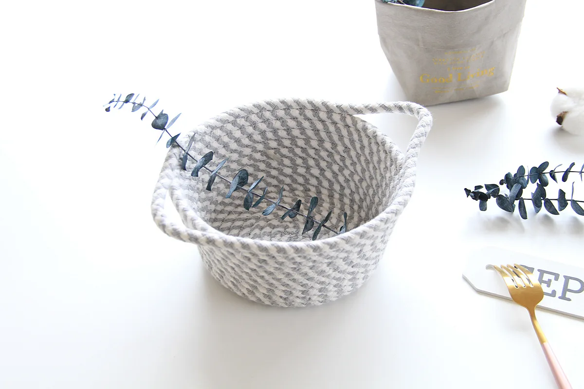 Тканая маленькая корзина для хранения, хлопковая веревка, Настольная коробка для закусок, косметическая коробка, растительный горшок, плетеная корзина, домашний гардероб, корзина для хранения