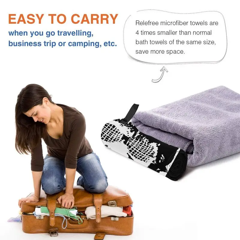 Это волшебное полотенце изготовлено из микрофибры, имеет лучшее поглощение воды, чем стандартные полотенца, и быстро сохнет. Полотенце оснащено специальным упаковочным мешком и карабином, который удобен для упаковки и подвешивания, его можно повесить в любом месте, чтобы быстро высохнуть. Светильник небольшого размера и веса, вы можете легко положить полотенце в спортивную сумку или рюкзак. Карабин на сумке может быть прикреплен или загружен в сумку. Складная конструкция, можно легко сложить в дорожную сумку, хранить в чемодане или рюкзаке. Самый подходящий подарок для любителей спорта, путешествий и приключений.