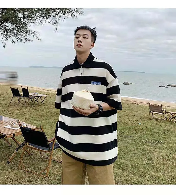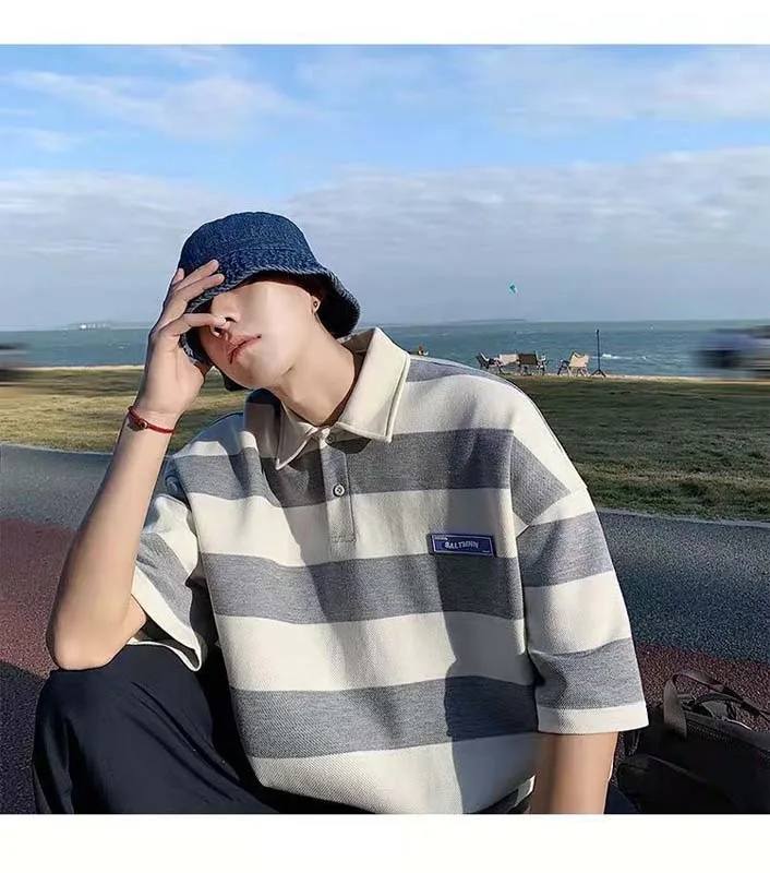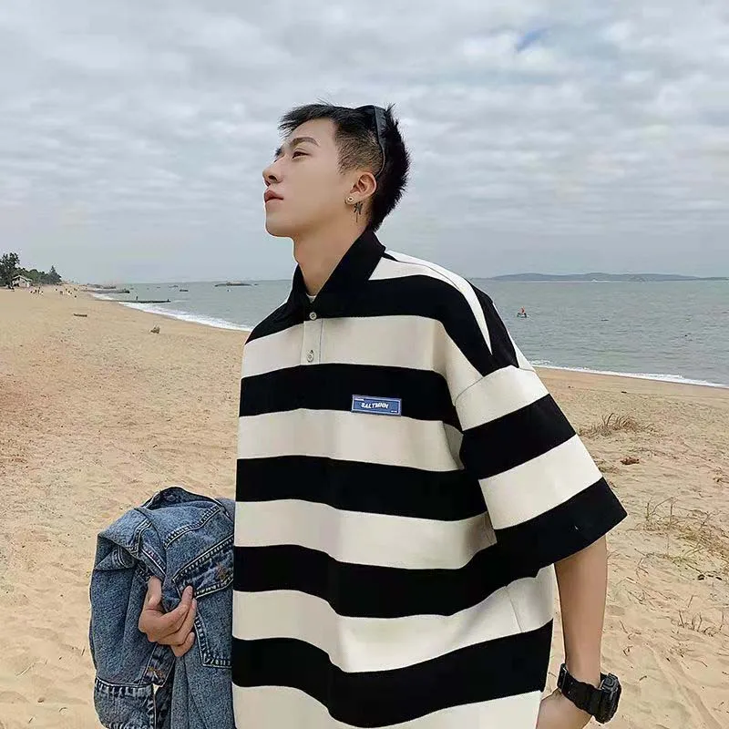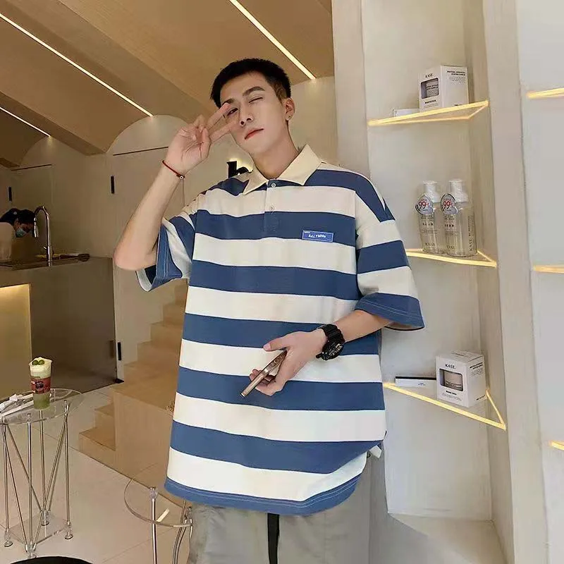 Отзывы о Полосатая футболка с коротким рукавом для мужчин весна-лето брендовая Свободная