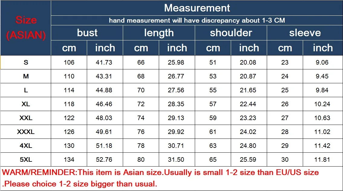 2. Все наши товары рекламируются в азиатских размерах, размер на 1 или 2 размера меньше, чем европейские и американские люди, пожалуйста, выберите на 1 или 2 размера больше и изучите таблицу размеров перед покупкой.