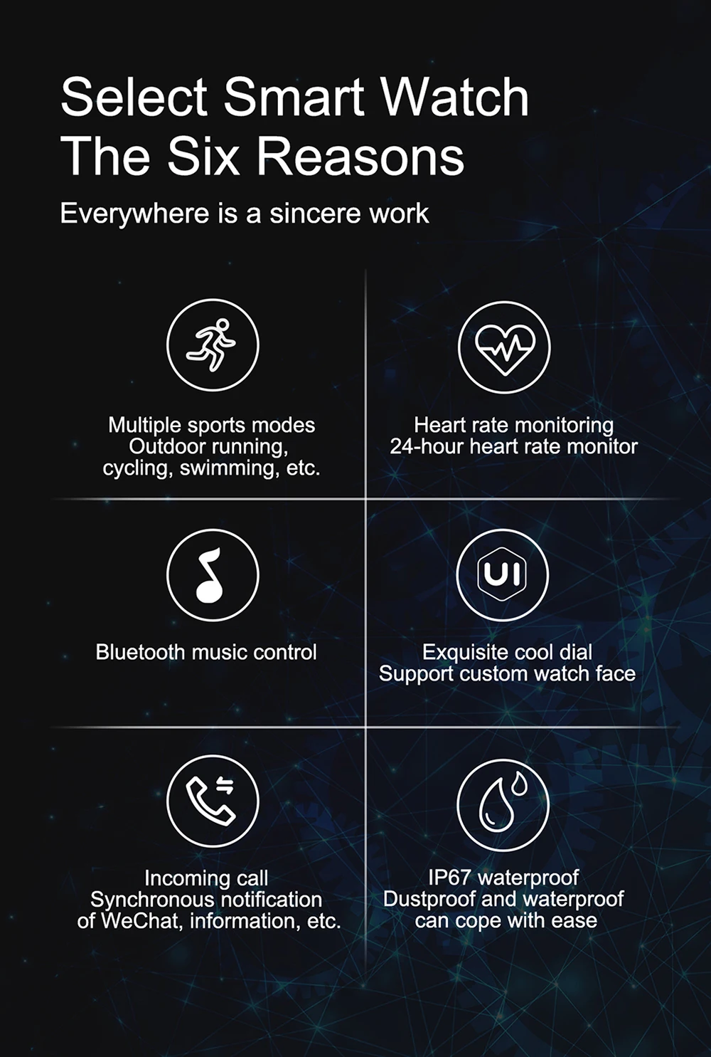 1. Этот продукт может быть только водонепроницаемым (прохладная вода), пожалуйста, не носите его, чтобы плавать, уроните его в воду или пропитанный водой и т. Д.
