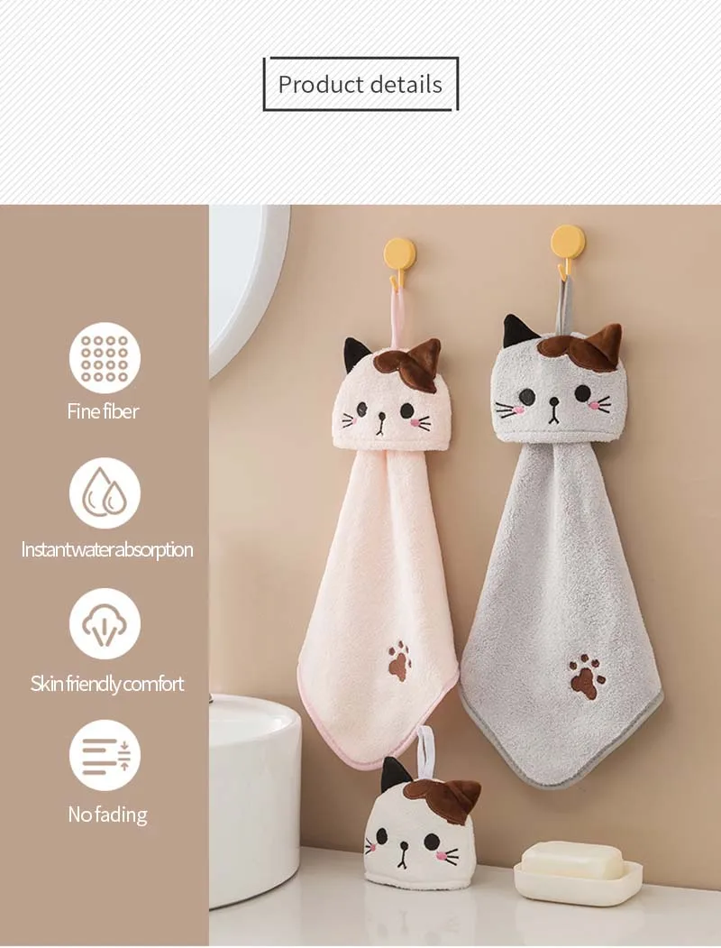 Полотенце для рук для детей, впитывающее, подвешивающее, Вышитое котом полотенце, ette Home Decora, Коралловое флисовое полотенце для рук, принадлежности для ванной комнаты
