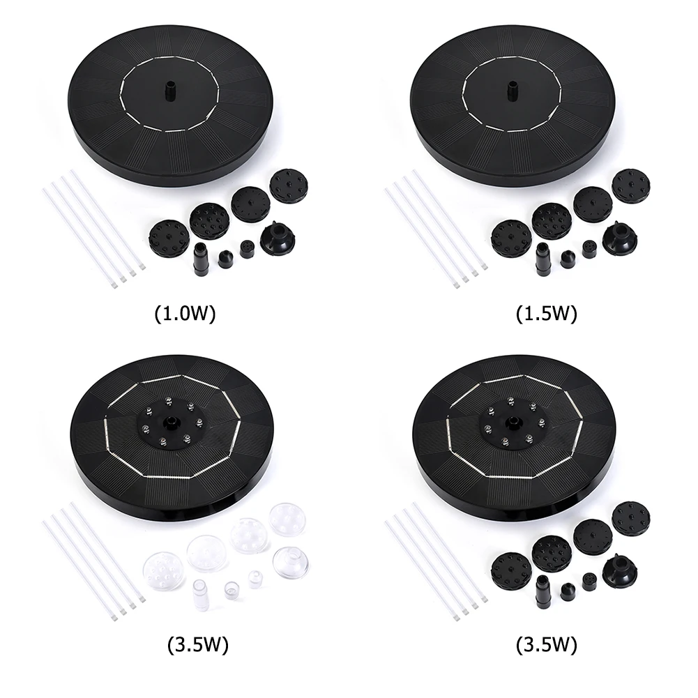 Список продуктов: Солнечный водяной насос X 1, насадки X 6, основание сопла X 1, адаптер X 1, руководство X 1, противоскользящие стойки X 4