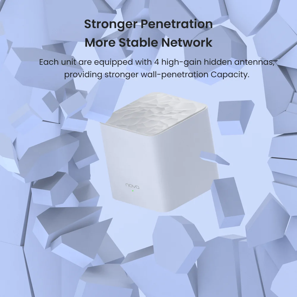 Сетчатые роутеры Tenda оснащены встроенным усилителем сигнала. Концентрированный сигнал обеспечивает более сильное и стабильное многоэтажное покрытие Wi-Fi для дома. Вы можете наслаждаться лучшим сигналом в любом уголке.