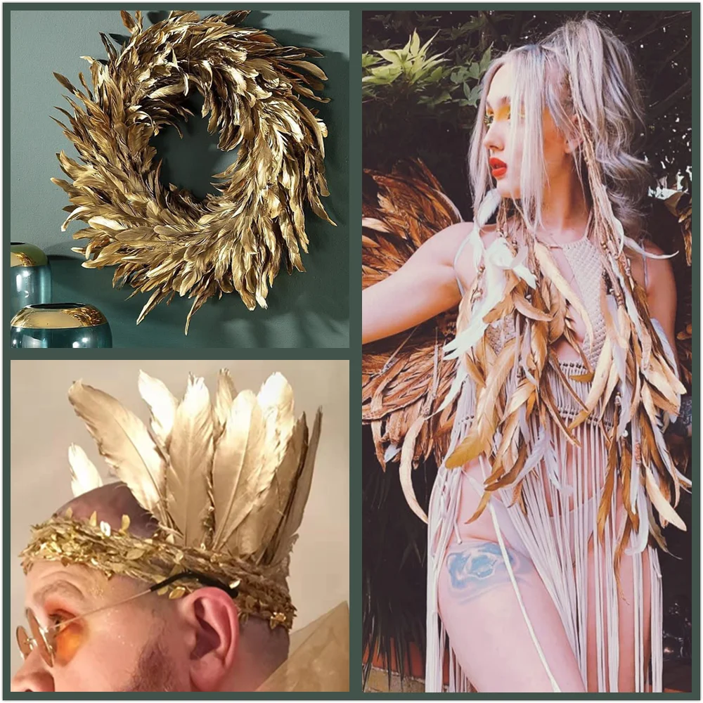 Золотые перья обычно используются для украшения дома, ремесленных проектов и обрезки одежды и Модные аксессуары; Но по правде говоря, вы можете использовать это для всего, что приведет вас к вашему воображению! |