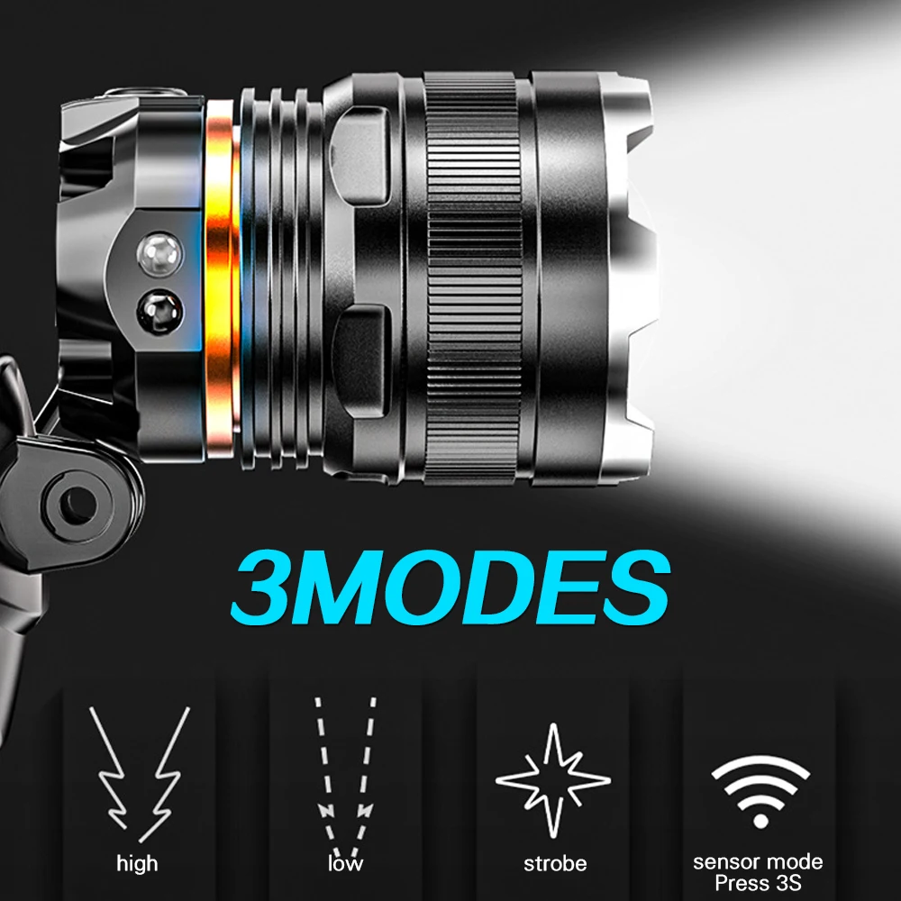 Светильник и датчик движения: в дополнение к 3 режимам светильник: сильная яркость/нормальная яркость/мигание (SOS), этот головной фонарь имеет инфракрасный индукционный датчик. Когда режим управления жестами включен, вы можете управлять головным фонариком, пока вы махнете рукой на переднюю часть лампы.