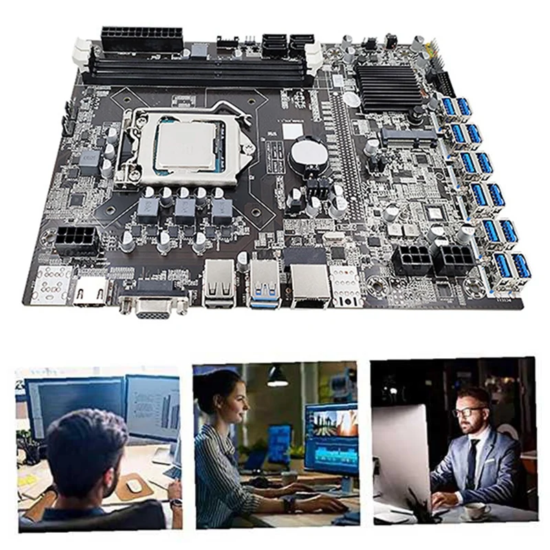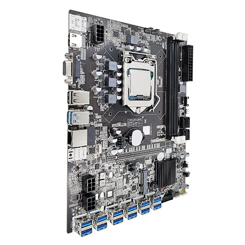 Материнская плата B75 USB-BTC использует цельные конденсаторы, чтобы сделать материнскую плату более стабильной; Она поддерживает ЦП LGA1155 и использует чипсет B75, чтобы обеспечить полную производительность ЦП; материнская плата подходит для горнодобывающей промышленности благодаря низкой цене и богатым расширительным интерфейсам.