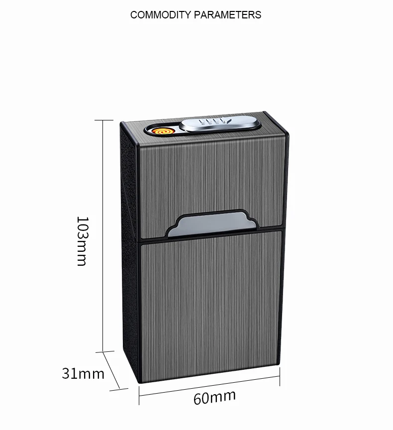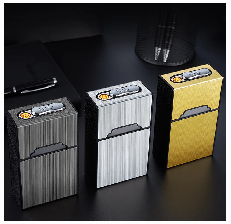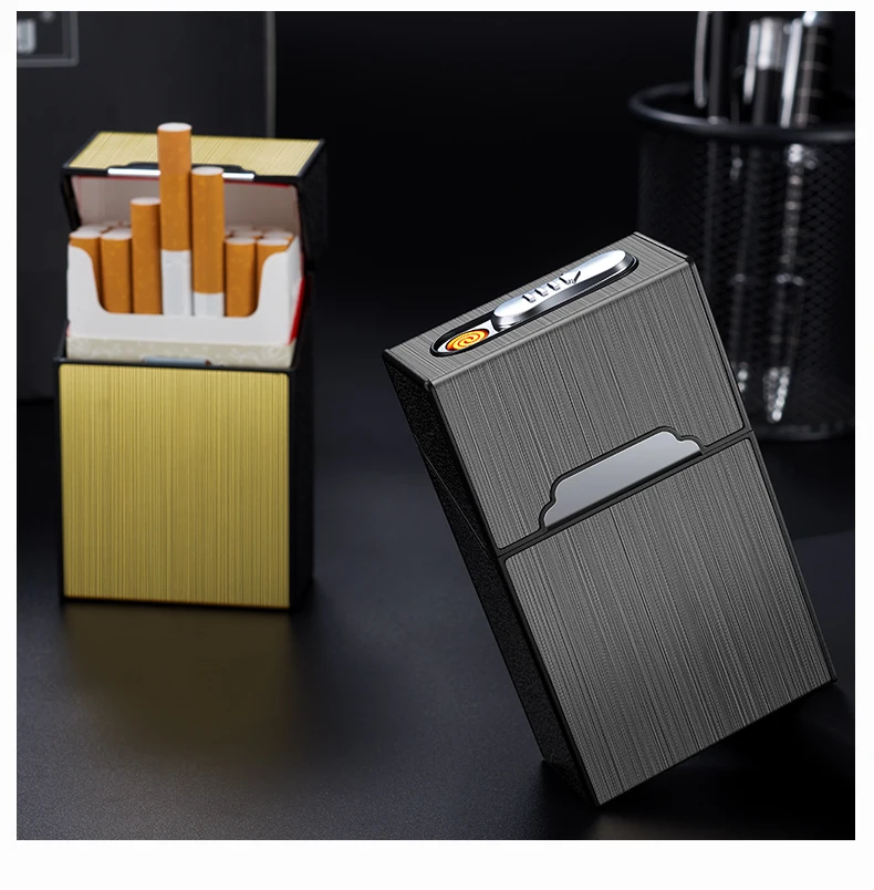 Непродуваемый чехол для сигарет 20PSC с USB зажигалкой, автоматические металлические коробки для сигарет, 10 шт., чехол-держатель для сигарет