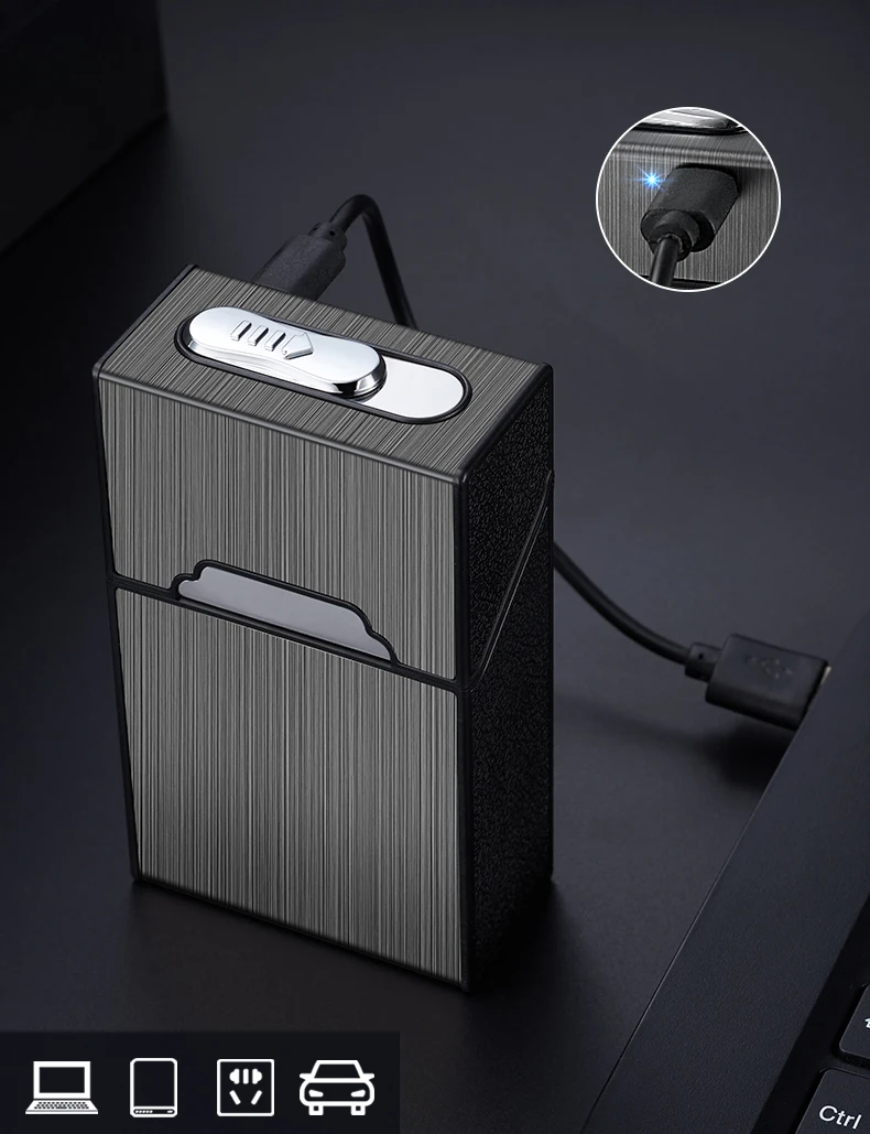 Отзывы о Ветрозащитный заряжаемый 20 шт. чехол для сигарет с USB зажигалкой Автоматический