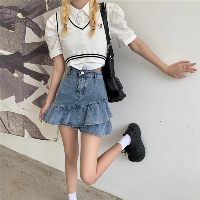 Отзывы о Юбка женская джинсовая трапециевидная с оборками и высокой талией - купить по
