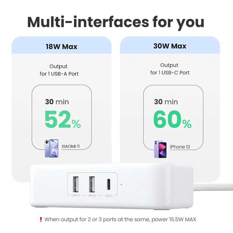 Примечание: когда вы используете 2 или 3 порта в то же время, суммарная мощность составляет 15,5 Вт макс.