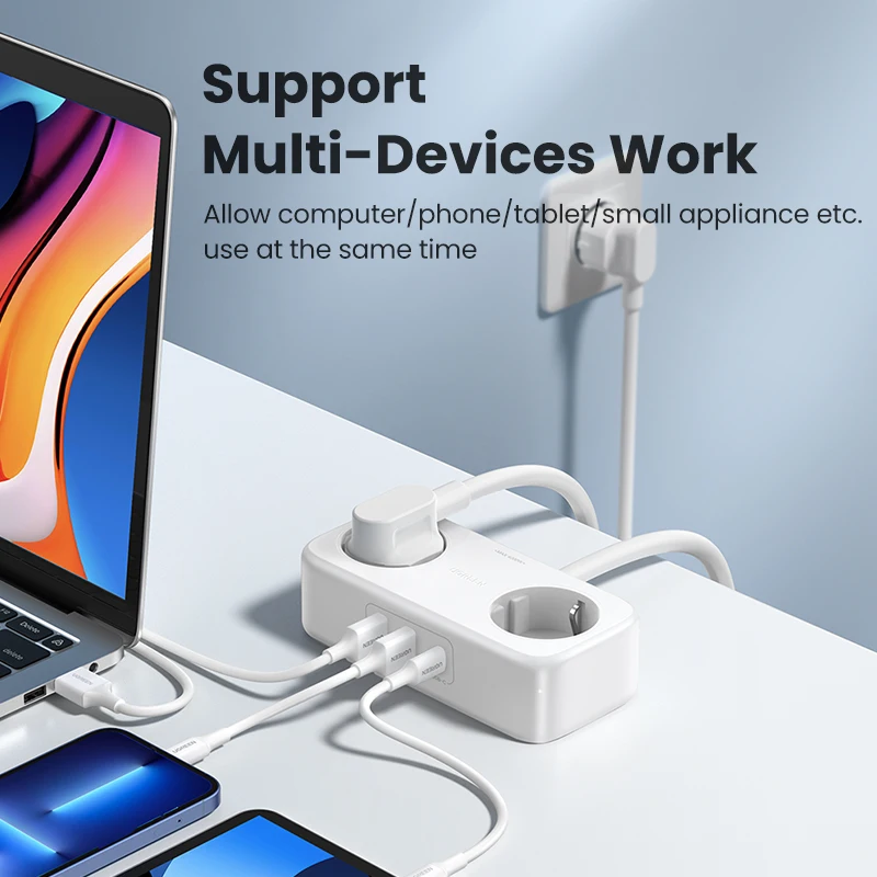 3 высокоскоростной USB порты и2 розетки переменного тока.