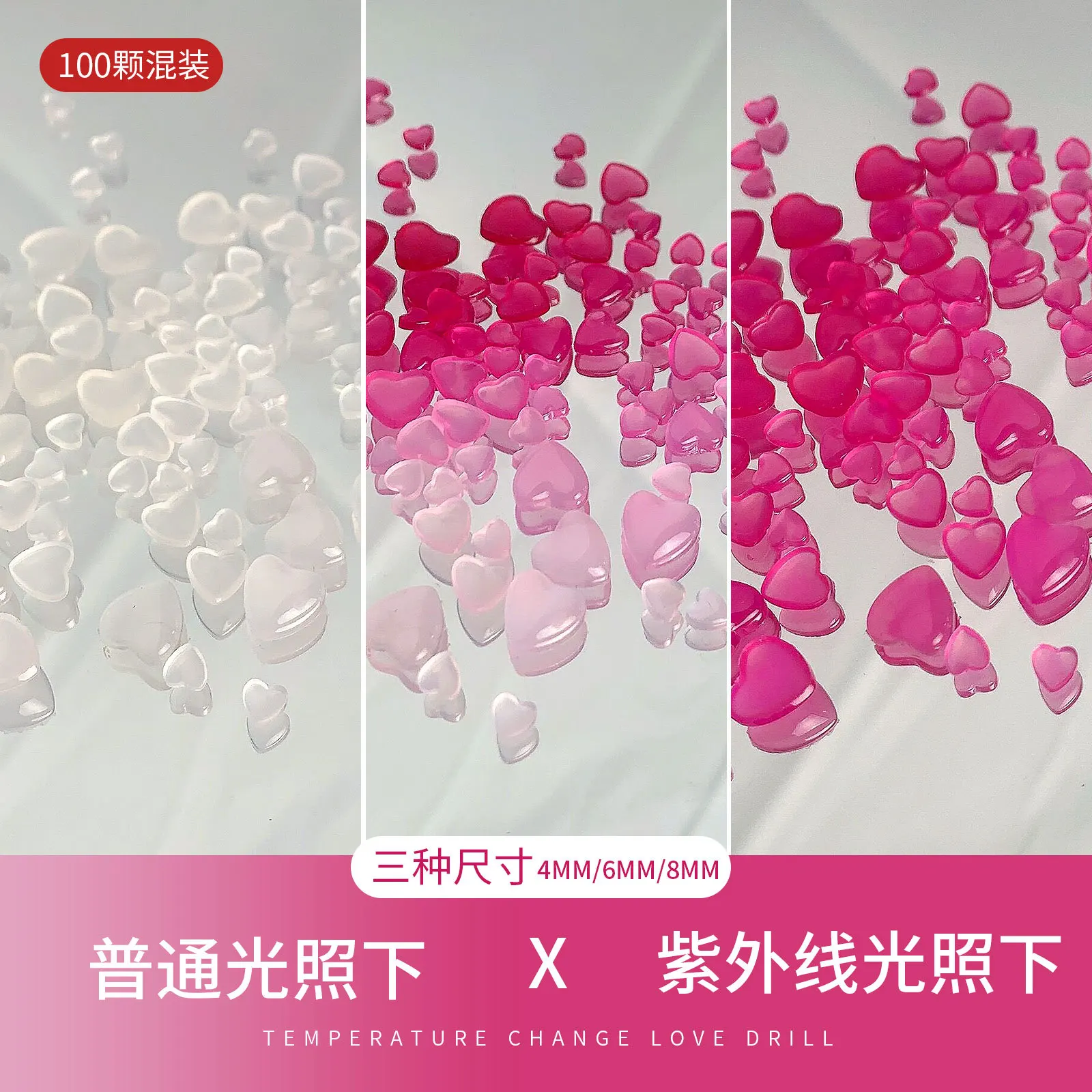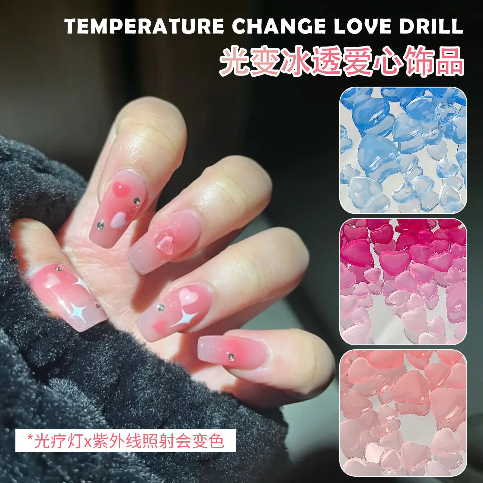 Отзывы о 3Colors Blue/Pink /Rose Red Love Heart Acrylic Nail Rhinestone Light-Sensitive Color-Changing Korea 3D Art Decoration && - купить по