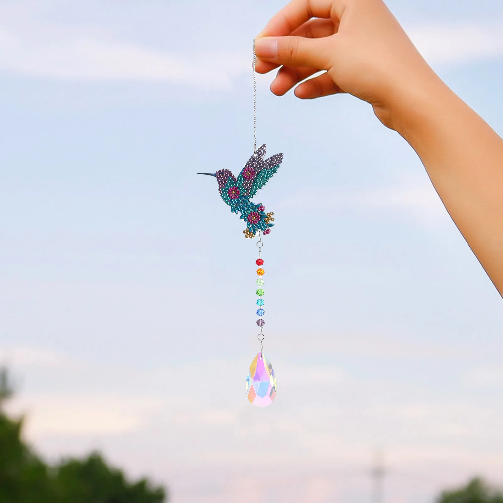Цепь цветов радуги + слезы ангела: хрустальный светильник, притягивающий ювелирные изделия, сделан из кристалла K9, и хрустальный светильник, притягивающий ювелирные изделия с кристально чистым процессом резки и высоким показателем преломления светит на солнце.