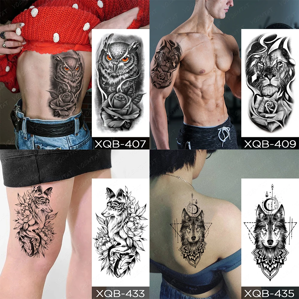 Отзывы о Водостойкая Временная тату-наклейка старая школа Лев волк флэш-тату треугольник
