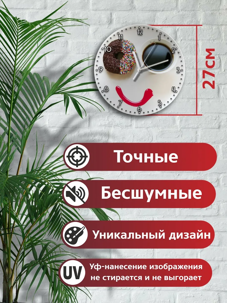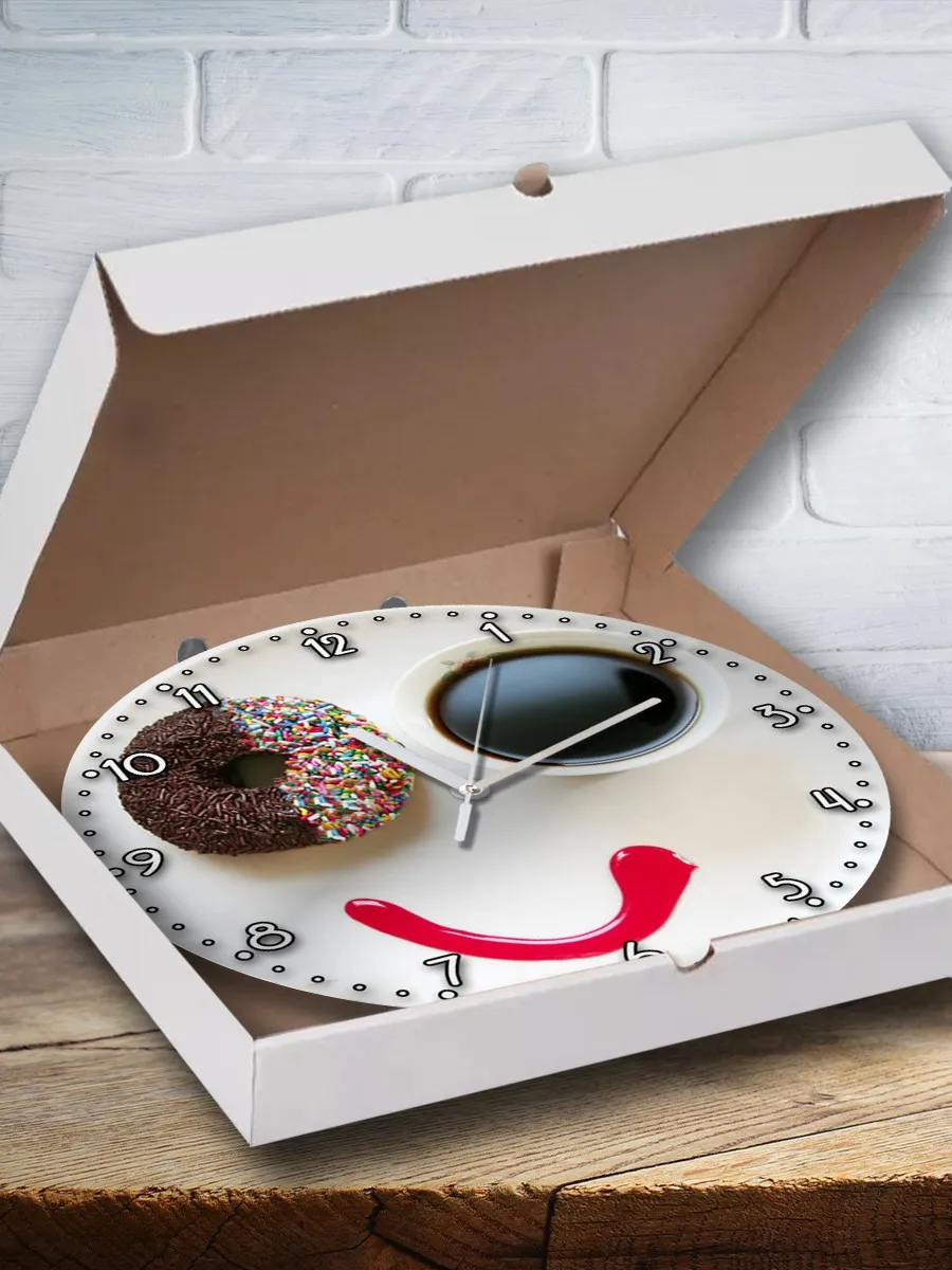 Отзывы о Настенные часы на кухню интерьерные декоративные УФ печать еда (пончик и кофе) - 46