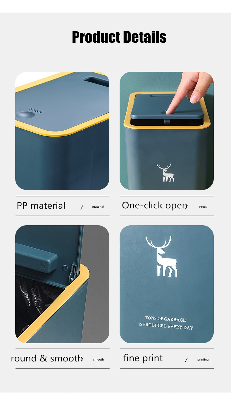 Мусорное ведро легко ухаживает, и мусорное ведро маленькое: идеальный размер для ванных комнат, спален, офисов или мест, где пространство ограничено.
