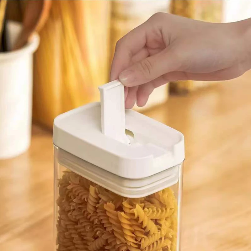 Герметично держать еду сухой и свежей ---- с специальным механизмом запечатывания, вы можете открыть или закрыть наши пластиковые контейнеры безопасно, используя только два пальца. Просто переверните кольцо, чтобы открыть или перевернуть кольцо вниз, чтобы зафиксировать и запечатать.