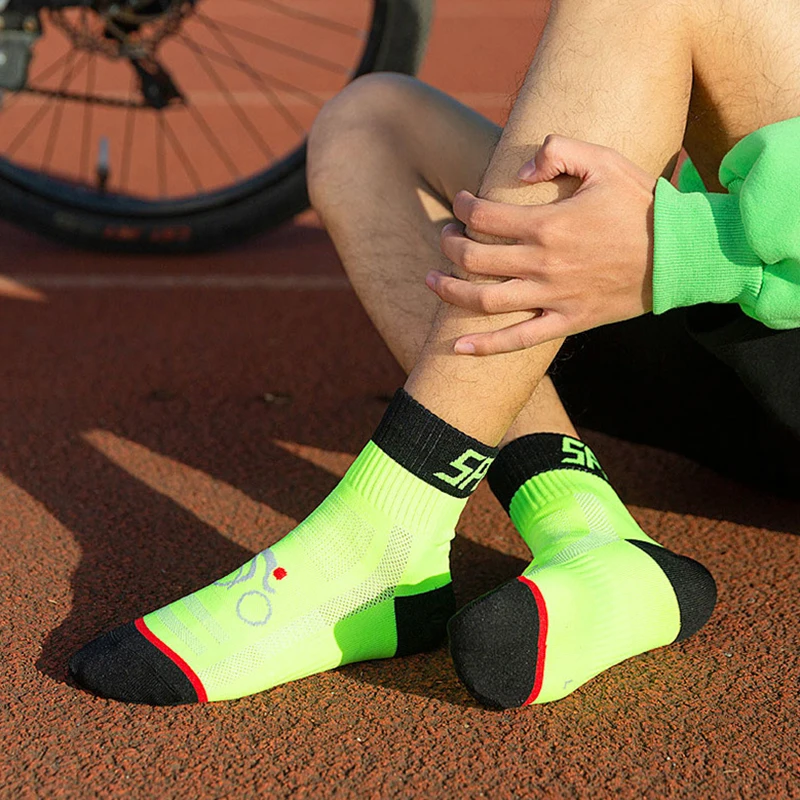 Компрессионные беговые носки для анатомически правильной посадки включают в себя: пятки для легкого включения и выключения, бесшовные, без блистера, без косточек, полное покрытие лодыжки предотвращает трение обуви.
