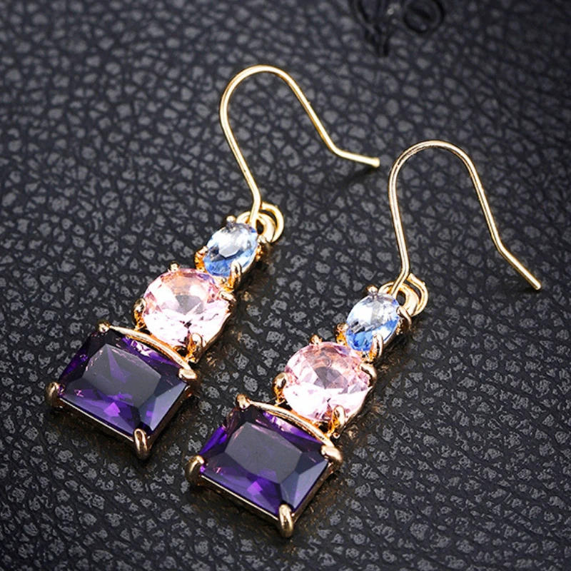 Отзывы о Серьги SODROV с аметистом в Корейском стиле Разноцветные квадратные Позолоченные