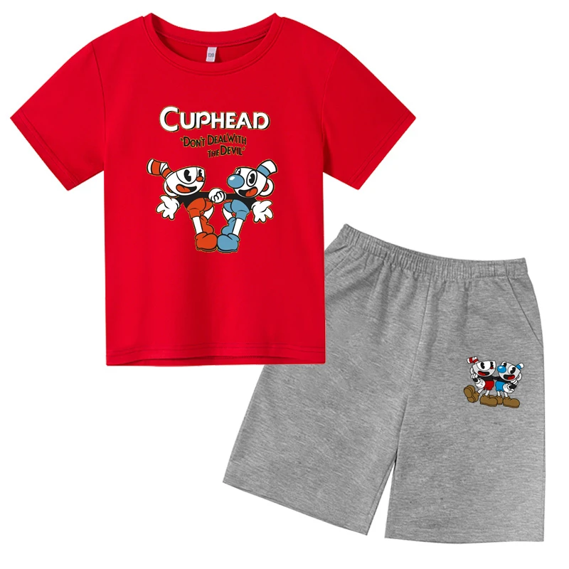 Отзывы о Детский игровой костюм с принтом Cuphead летний повседневный комплект из двух