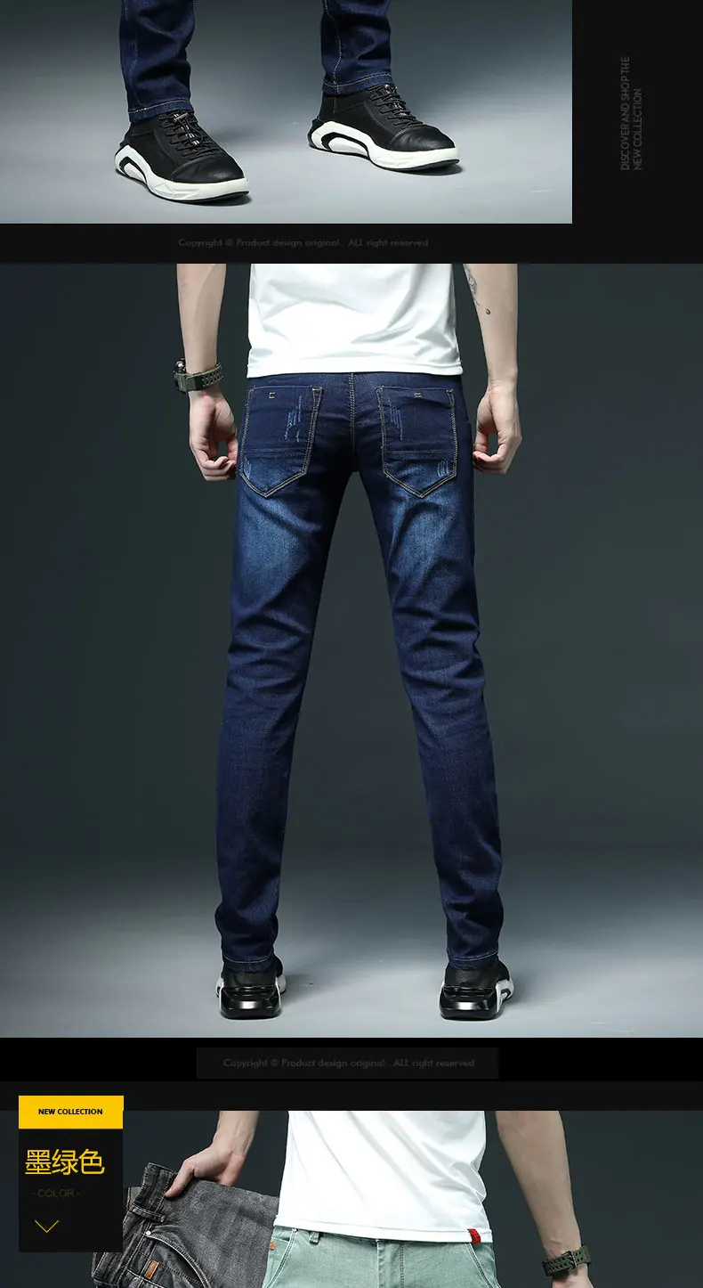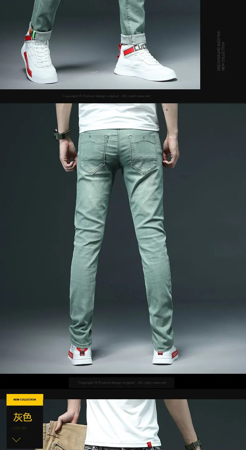 Отзывы о Джинсы мужские Стрейчевые облегающие повседневные брюки из денима синие зеленые