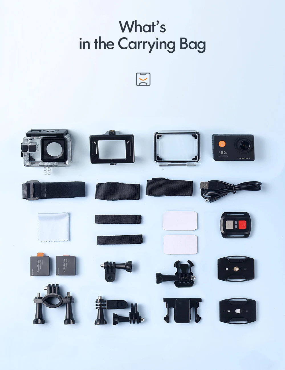 1 камера, 1 Водонепроницаемый Чехол, 1 Пыленепроницаемый Чехол, 1 usb-кабель,