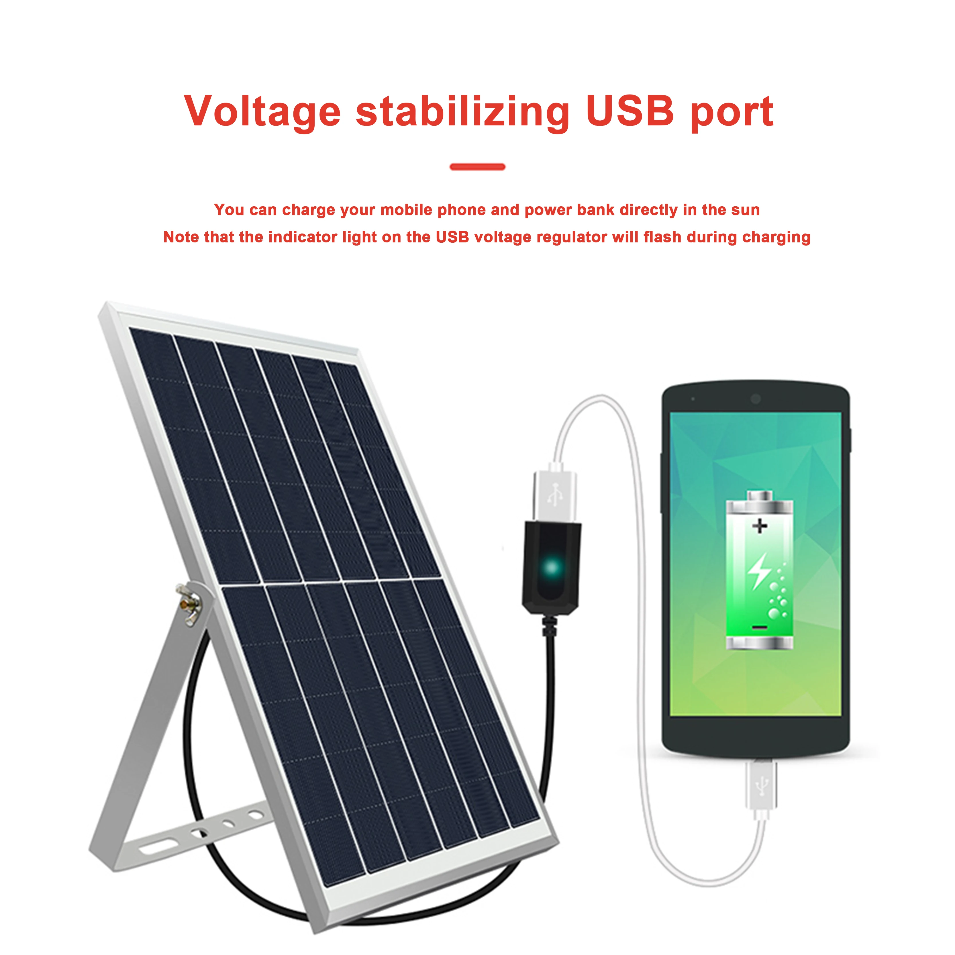 Солнечные панели оснащены usb-портами для стабилизации напряжения 5 В, которые могут напрямую заряжать мобильные телефоны или заряжать сокровища. Есть модели 10 Вт и 6 Вт, оба с кронштейнами.
