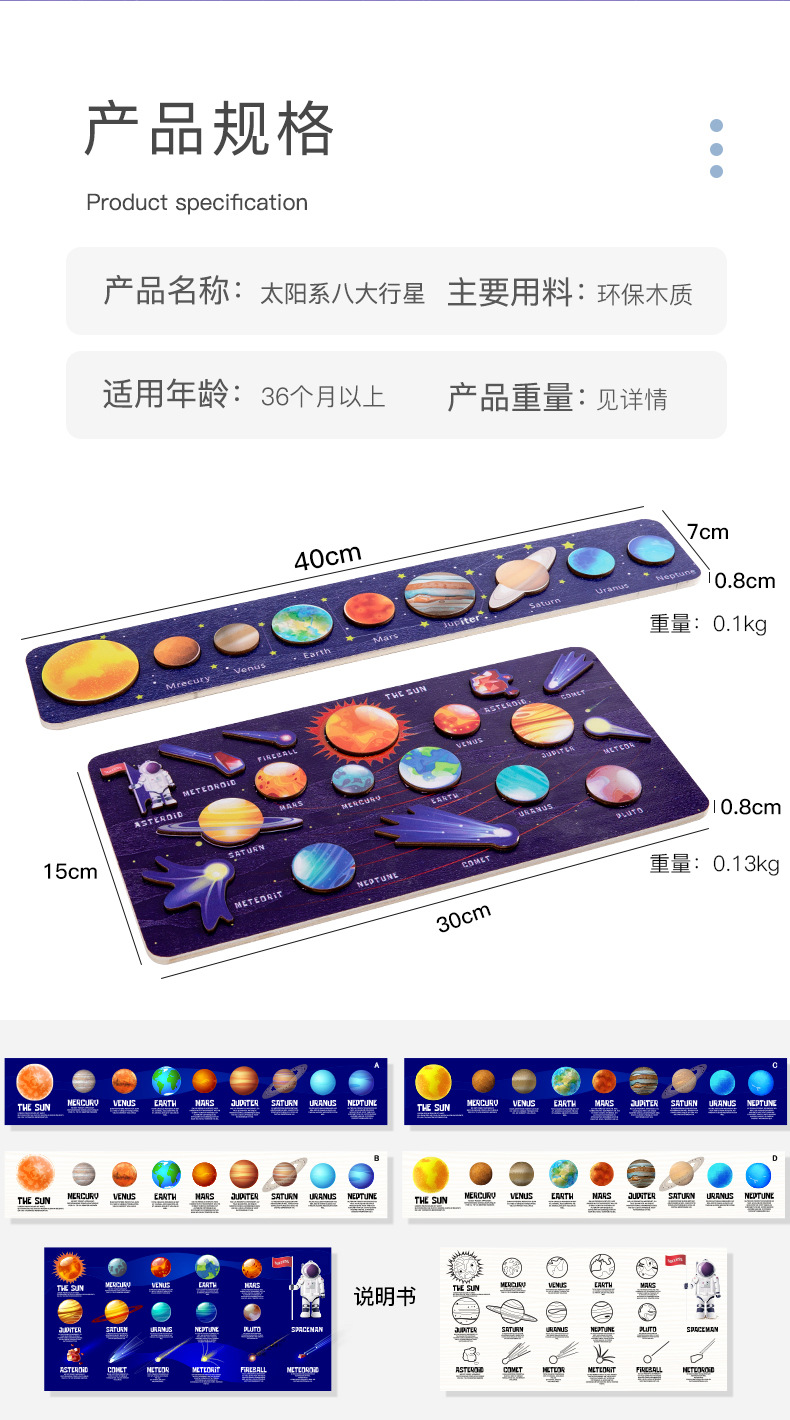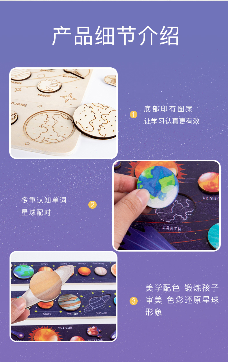Монтессори солнечная система развивающие игрушки галактика восемь планеты наука игрушки планетарий деревянная космическая доска Вселенная обучающая помощь