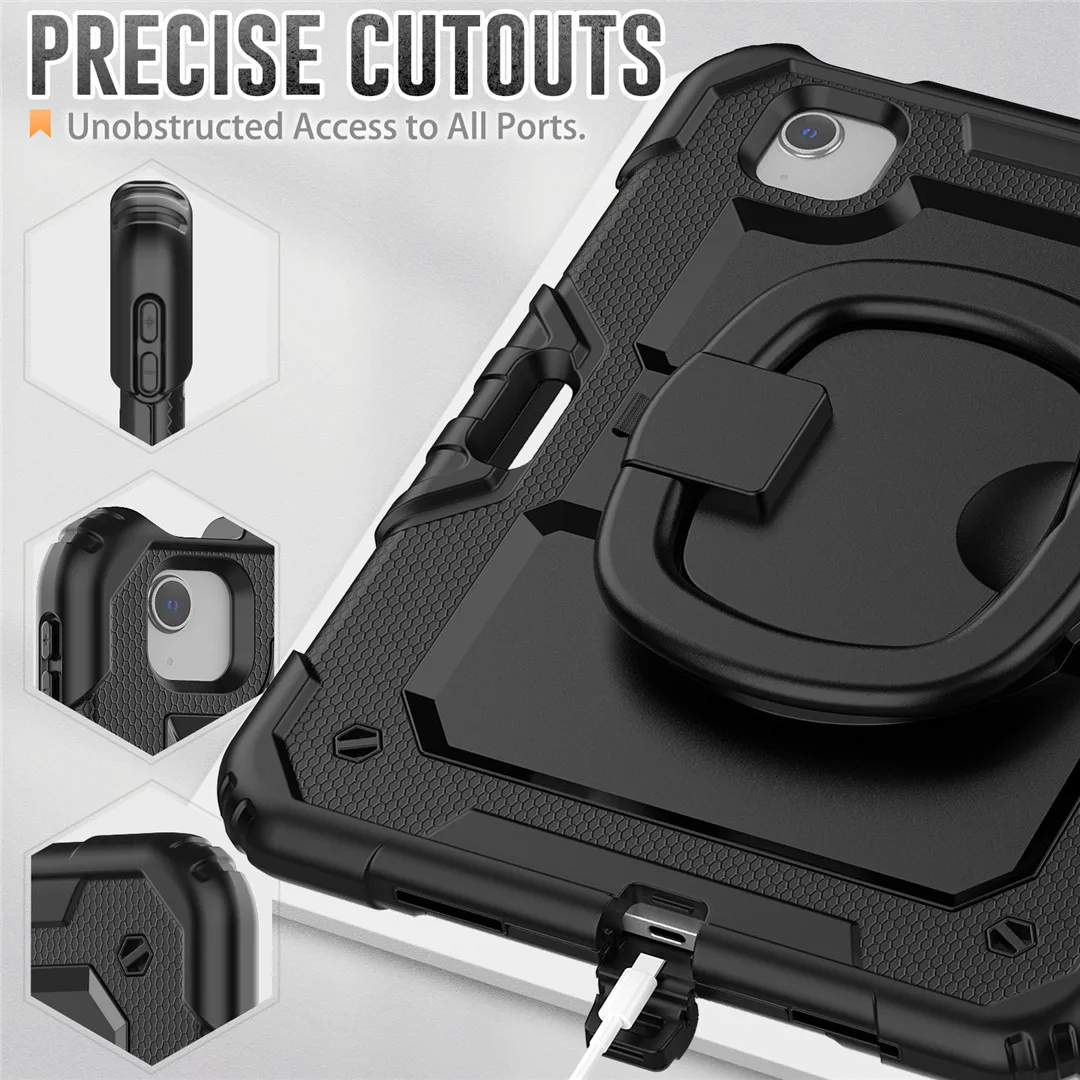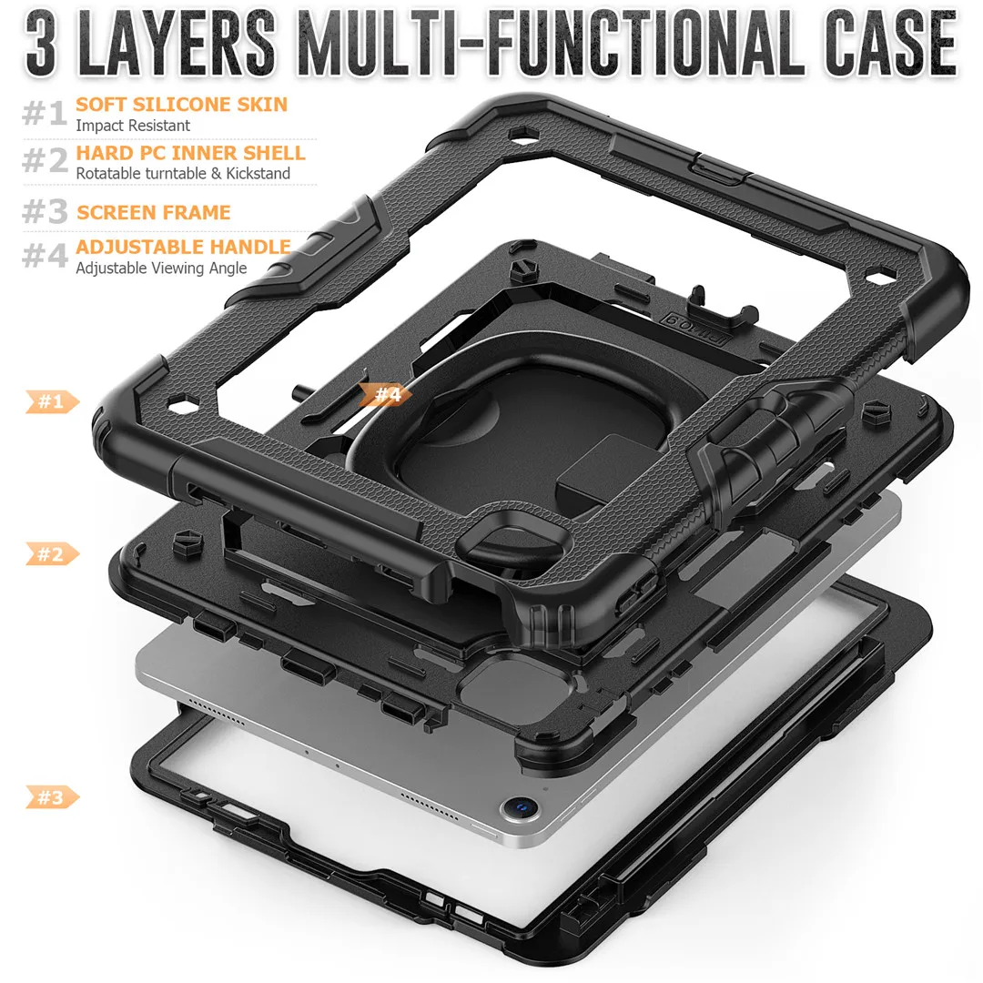 3. Универсальность: расположен на задней части для iPad 11 2021 тяжелых чехлов, встроенный вращающийся на 360 градусов подставка и регулируемый ручной ремешок обеспечивают более гибкий и удобный способ использования планшета во время работы, обучение или путешествие, идеально подходит для студентов, преподавателей, инженеров.