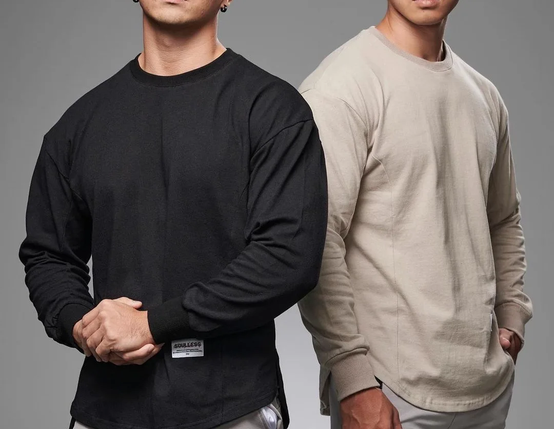 Отзывы о Футболка мужская с длинным рукавом хлопок свободная рубашка для бега простой