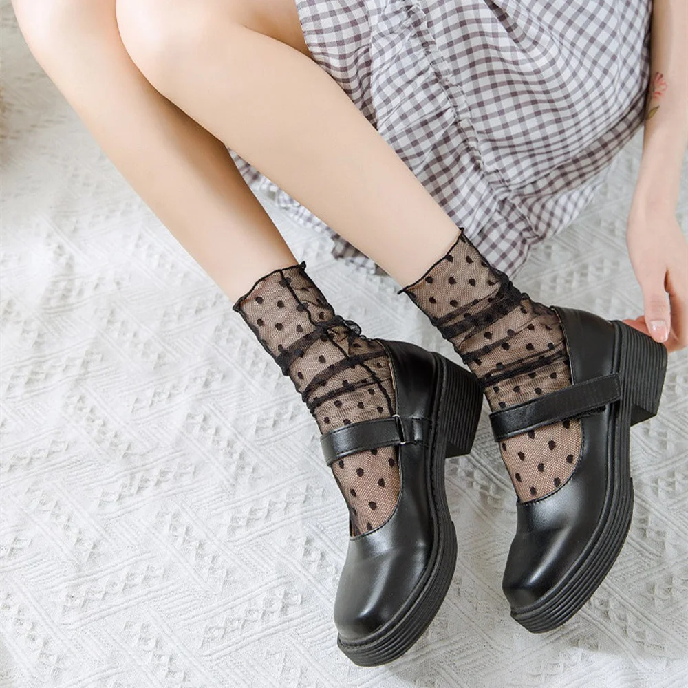 Отзывы о Винтажные короткие носки в горошек летние ультратонкие сетчатые кружевные