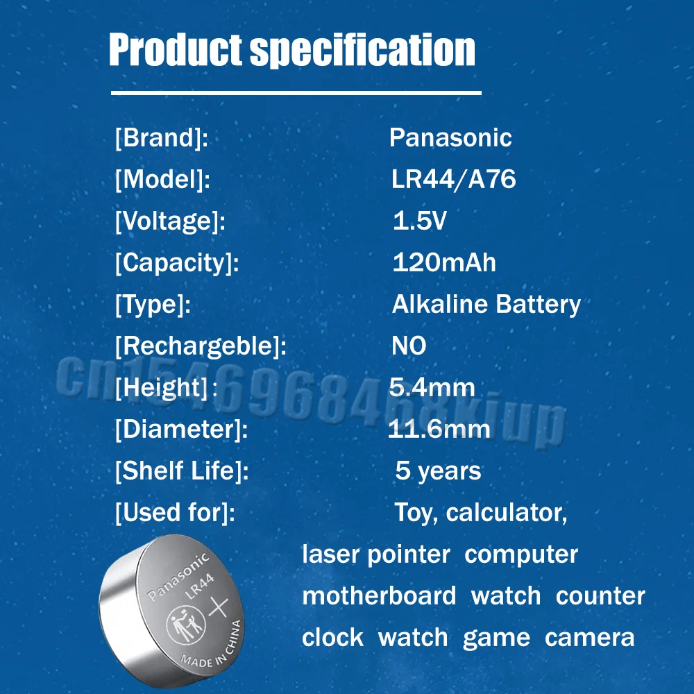Отзывы о 10PCS Panasonic LR44 A76 AG13 LR1154 SR1154 SR44 GP76 1.5V Alkaline Battery For Watch Clock Calculator Electric Toy Button Cell - купить по