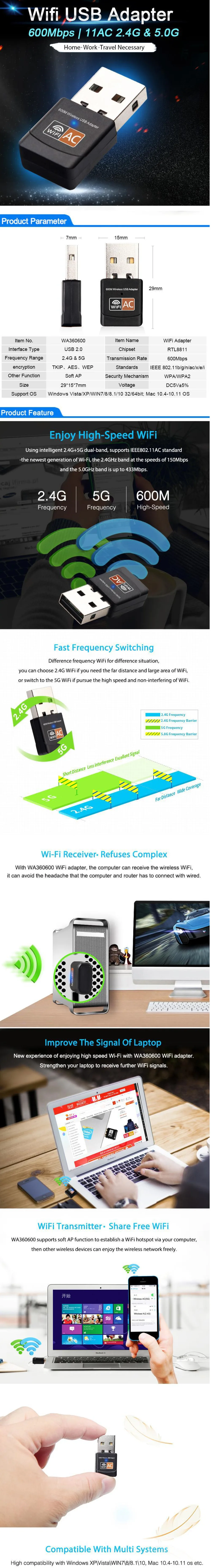 Отзывы о Wi-Fi адаптер с бесплатным драйвером 100 Мбит/с 600 ГГц и 5 USB 2 4 802.11n/g/a/ac RTL8811CU - купить по