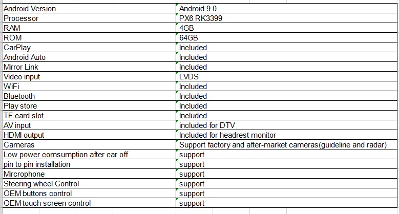 4. Включен HDMI выход для заднего монитора/AV для камер/LVDS в
