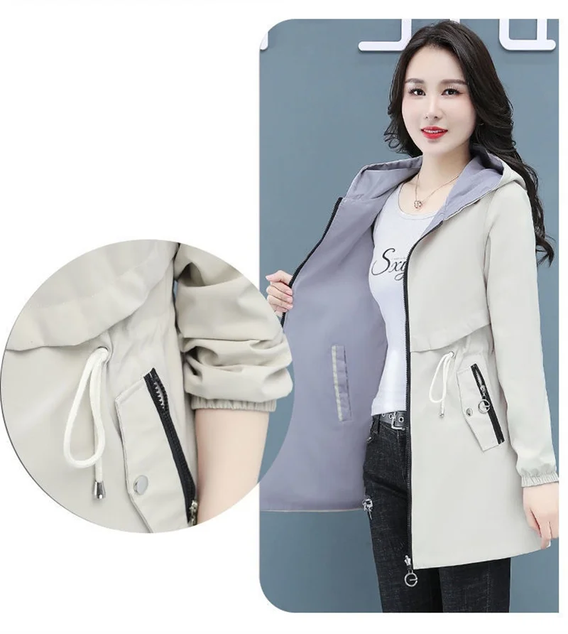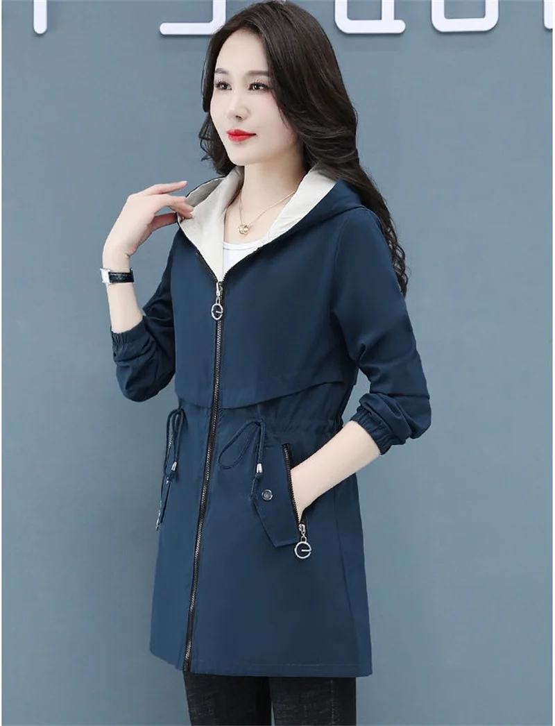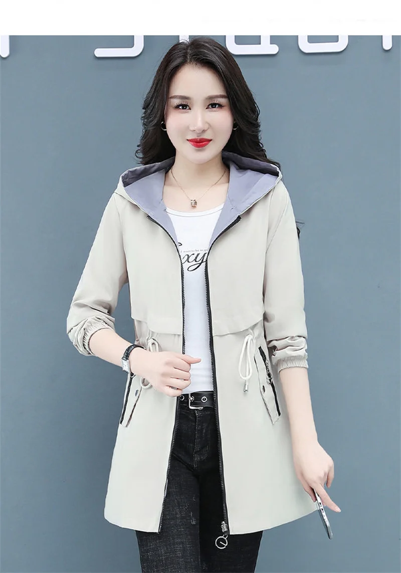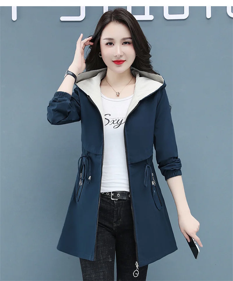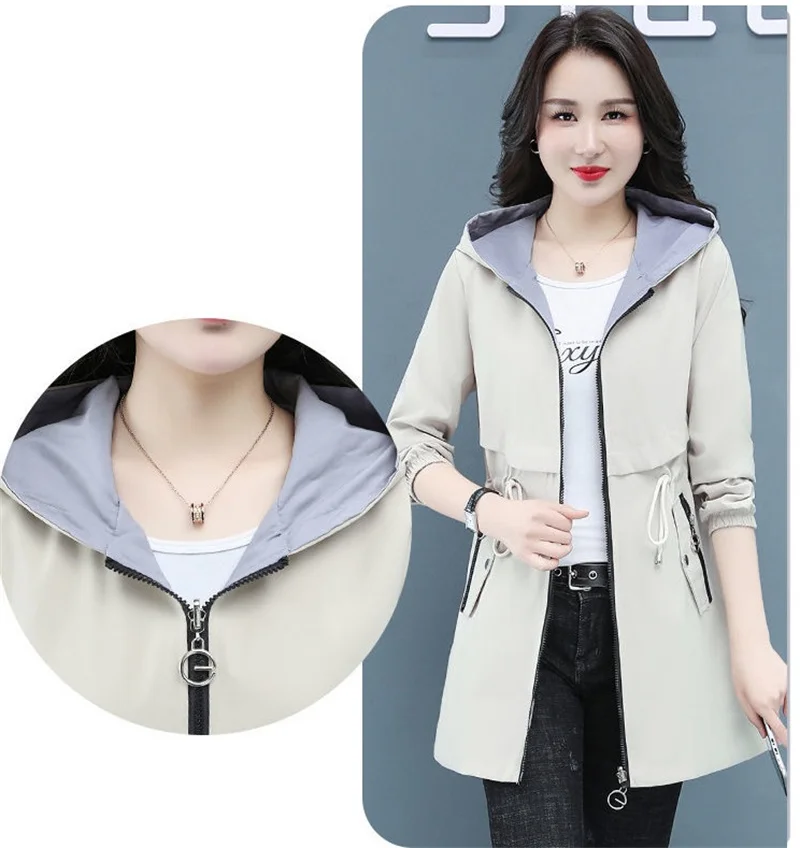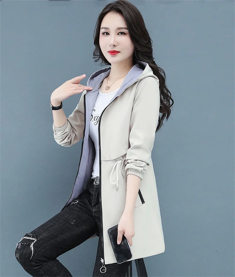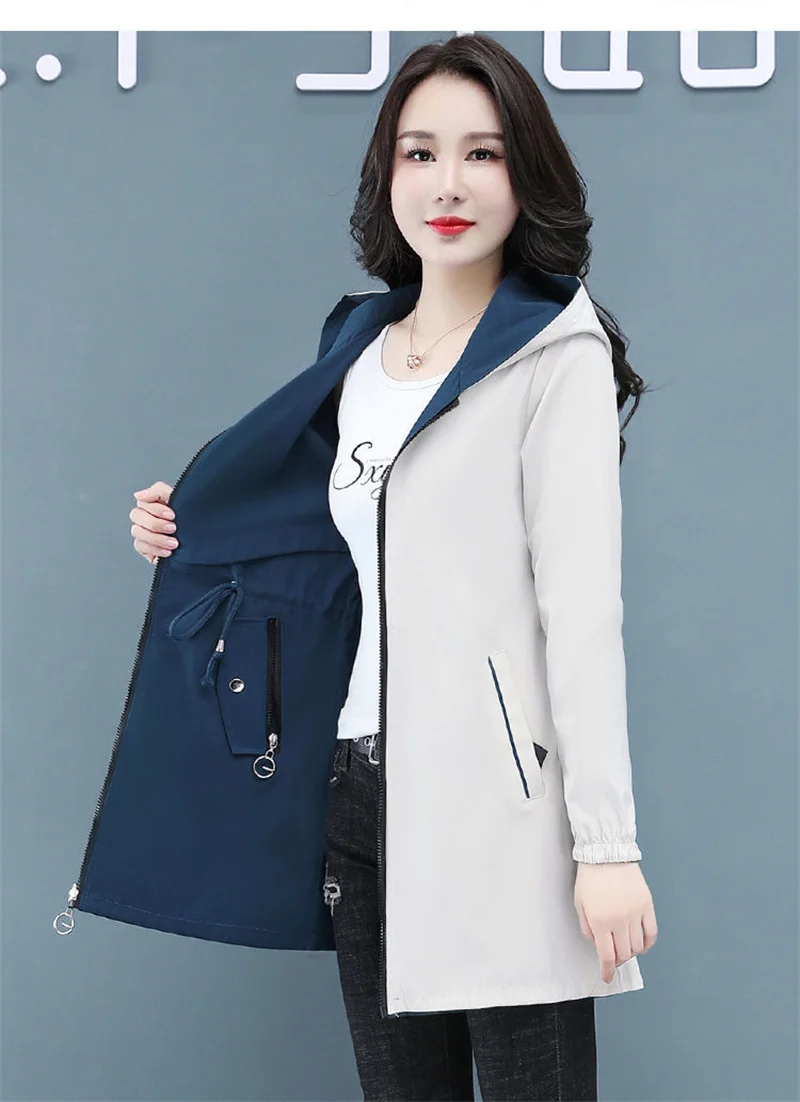 Отзывы о Тренчкот женский двусторонний модная ветровка средней длины с капюшоном