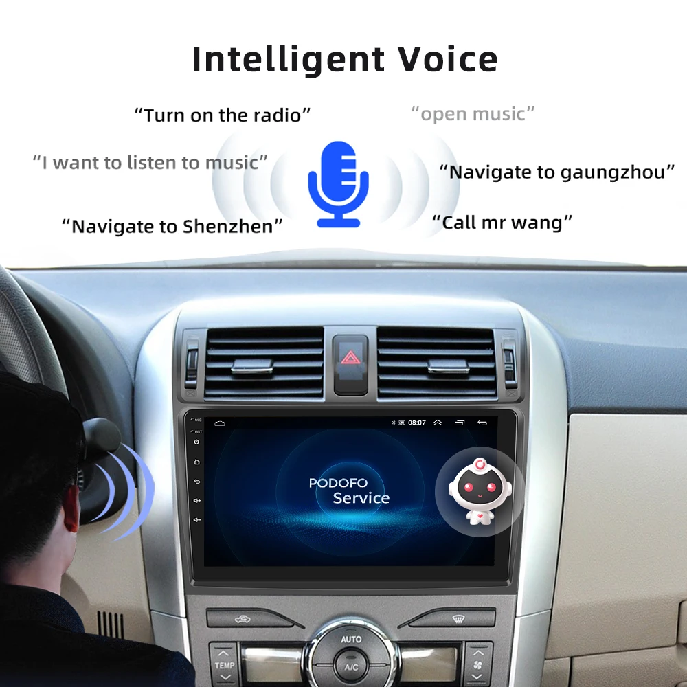 Podofo 9 "4G + WiFi 2din Android 10,0 автомобильный Радио стерео Мультимедиа Видео плеер GPS навигация для Toyota Corolla EX 2009-2013