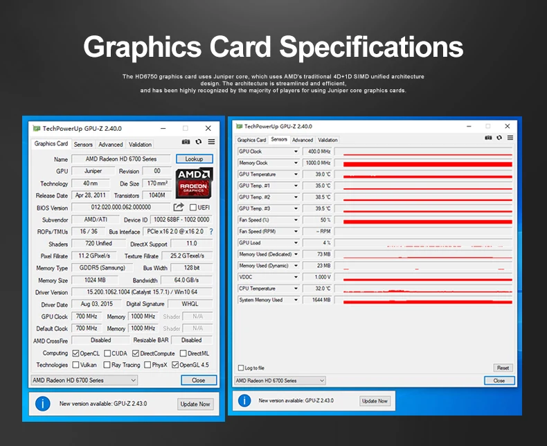 Потому что дата выпуска этой видеокарты была давным-давно. Поэтому GPUz распознает только то, что это видеокарта серии HD6700. Обратите внимание. Хотя модель видеокарты обнаружена GPUz серии HD6700. Но это не означает, что реальная модель видеокарты HD6700. Серии HD6700 могут включать модели, такие как HD6750 / HD6770 / HD6790. Поэтому параметры, отображаемые в GPUz, являются случайными. Параметры, показанные в GPUz, могут быть ближе к параметрам HD6750. Это недоразумение, вызванное программным обеспечением GPUz, и мы не можем контролировать его. Это не означает, что мы продаем поддельные карты. Если вы возражаете, не покупайте.