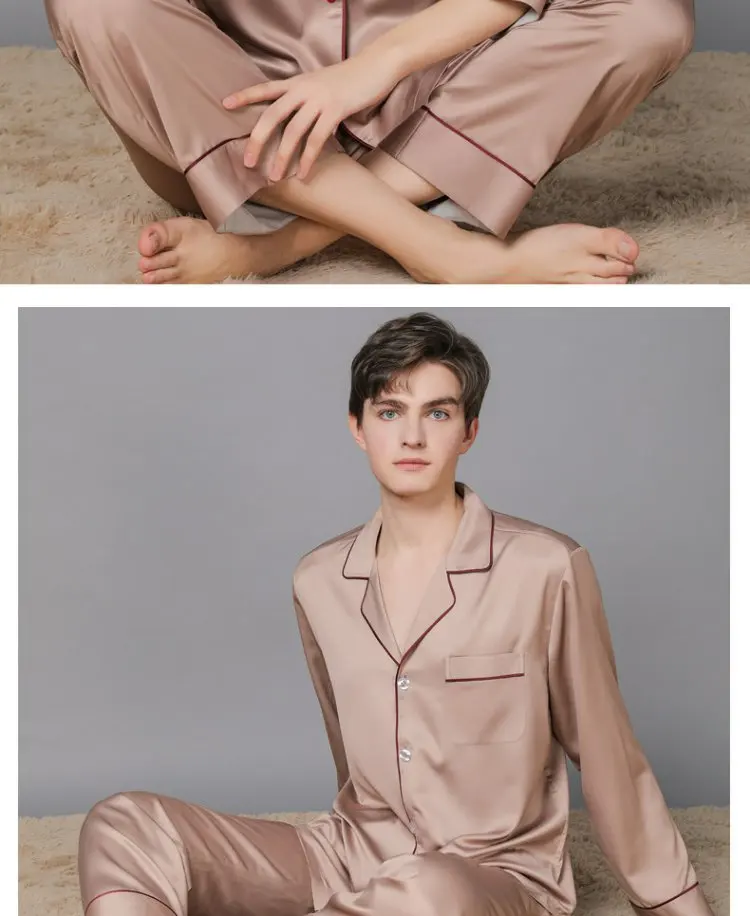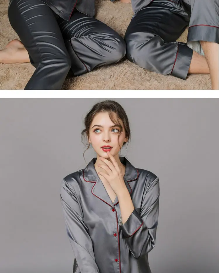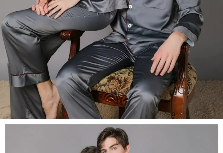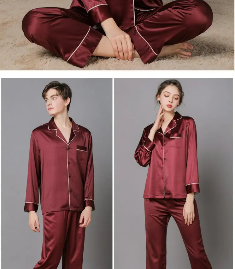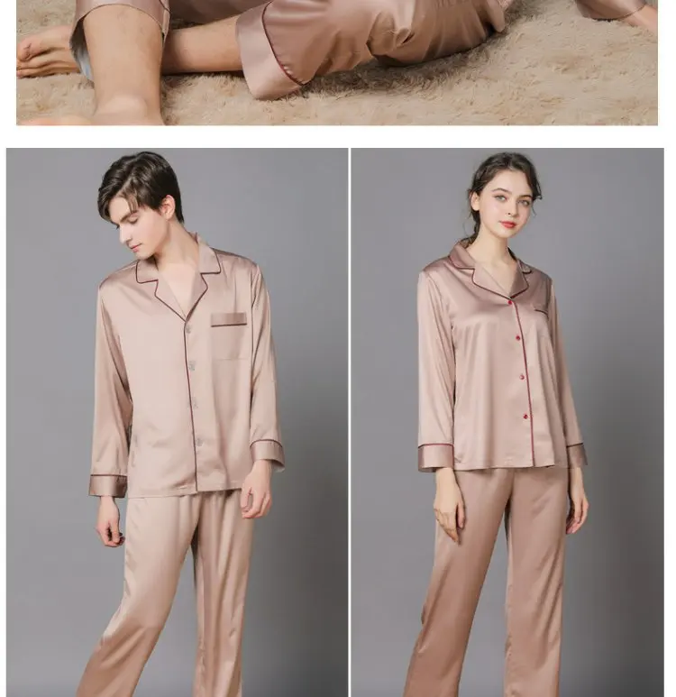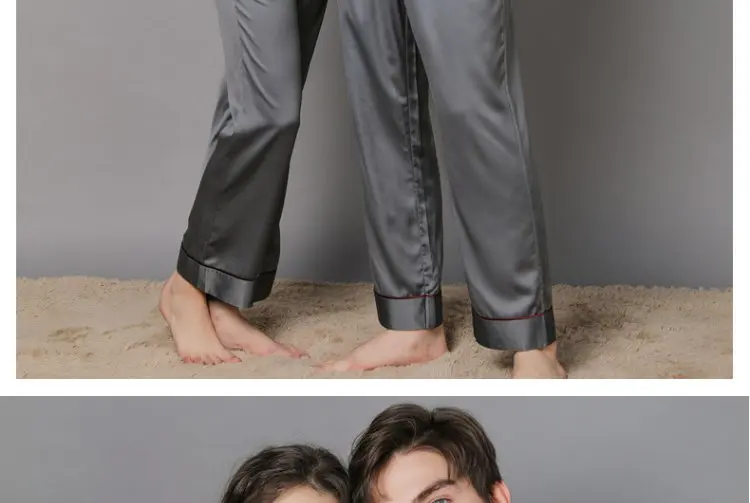 Отзывы о 100% Шелковая пижама для влюбленных женщин и мужчин брюки с длинным рукавом Тонкая