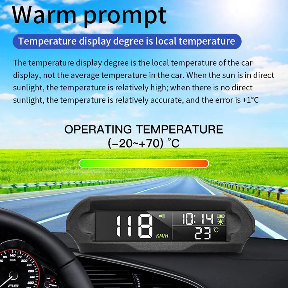 * 2. Встроенный 9 функций, включая отображение времени, отображение температуры, отображение высоты, отображение скорости транспортного средства, солнечную зарядку, usb-зарядку, напоминание об усталости при вождении, настройку компенсации скорости транспортного средства, оповещение о превышении скорости.
