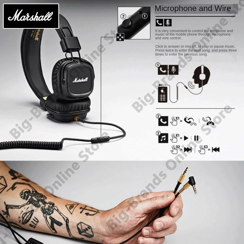 Отзывы о Наушники-вкладыши Marshall Major II 2 Bluetooth оригинальная беспроводная гарнитура поп-рок