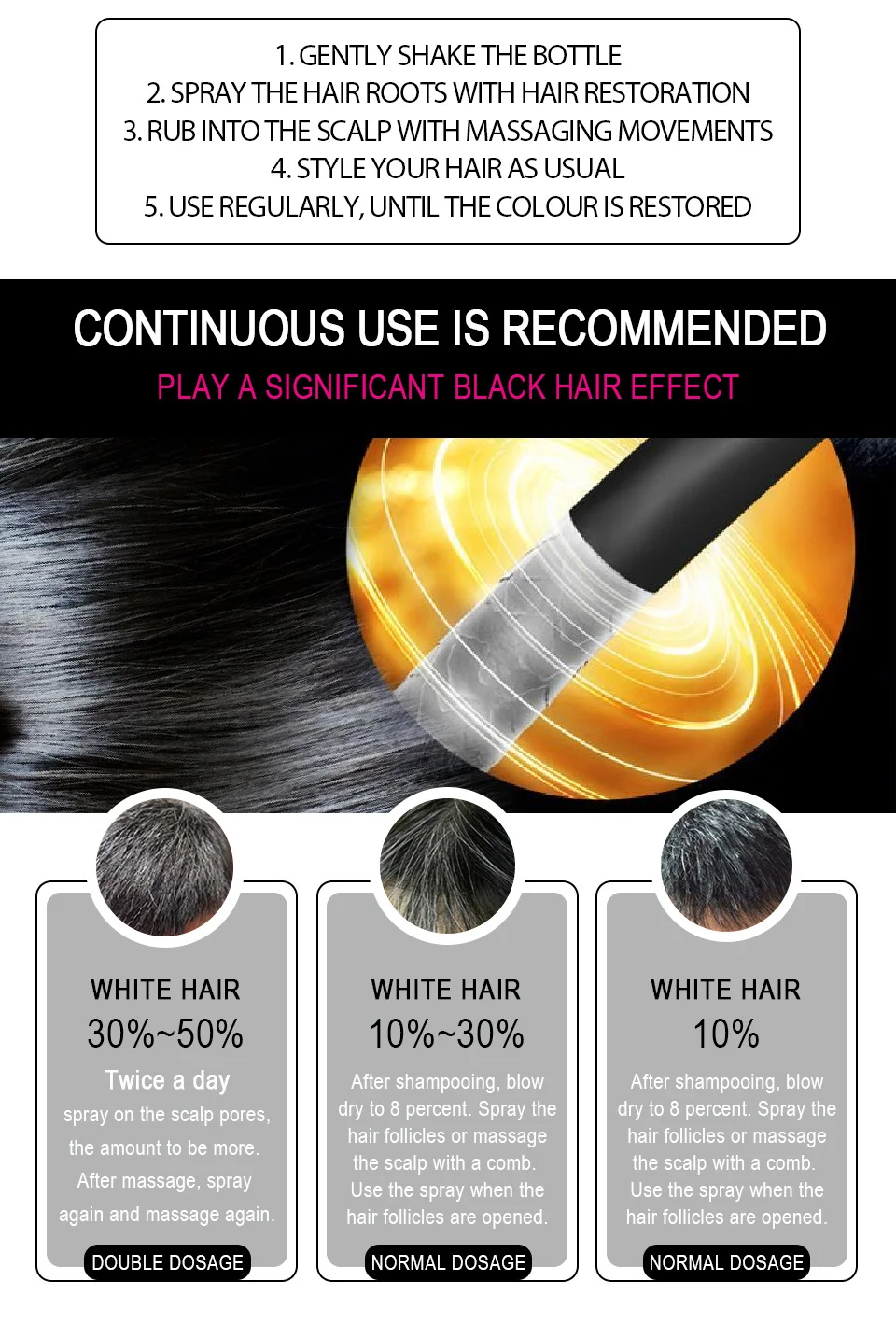 Черный спрей для роста волос предотвращает восстановление белых волос сыворотка меланина против выпадения волос Уход восстановление сухой поврежденной основной уход 30 мл